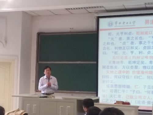 蔡利民老师就论坛主题发表了精彩的演讲,他也从儒家的角度对国学进行分析,国学是精英的还是大众的?蔡老师认为,国学应该是由精英进而普及大众。蔡老师认为儒家的本质是生命化的,生活化的,由此国学的本质也离不开生命和生活,大众的生活是国学的基础。接着他讲道国学的环境,认为良好的制度环境是国学发展的保证。