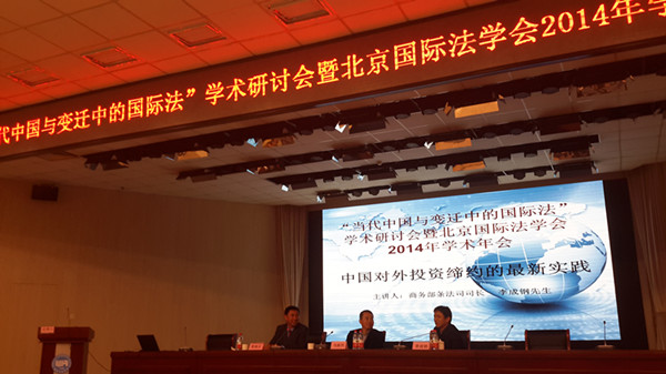 2014年11月29日,公司国际法专业的李英教授应邀参加了在国际关系学院举行的“当代中国与变迁中的国际法”学术研讨会暨北京国际法学会2014年学术年会,并做“稀土案的法律思考”主题发言,李老师的研究生董亚婧同学做PPT报告展示。为了加强国际法学界的学术交流,繁荣首都国际法学研究,本次研讨会由北京国际法学会主办,国际关系学院承办。
