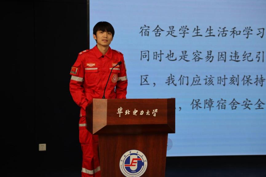 讲座伊始,应急救援队成员以理论授课的形式细致讲解了宿舍用电安全、用火安全等知识。基于真实事故案例,成员剖析了校园生活中存在的各类安全隐患,从消防知识到日常安全注意事项,为同学们普及了宿舍安全防范措施和应对策略。队员强调,防范火灾事故人人有责,只有不断提升自身安全意识和实操技能,才能保障自身及校园安全。