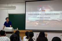 在课本中,民事执行是指“人民法院的执行组织,依照法定的程序,行使司法执行权,强制义务人履行已经发生法律效力的人民法院的判决、裁定或其他法律文书所确定的义务的活动。”这个定义十分书面化,同学们很难通过这简单的三行文字而了解到定义背后民事执行的真正内涵。王法官将他在亲自执行案件时的内心活动和真实行动,遇到的困难与挑战以及受到的老法官的谆谆教诲,通过幽默的语言讲述出来,为同学们全方位立体化展现了“民事执行”在司法实践中的真实情况,也为大家展示了一位执行法官的真实工作状况,使同学们对民事执行的理解更加深刻,也激励大家努力学习专业课,树立坚定的职业理想。在讲座的尾声,同学们纷纷提出自己的问题,王法官也给予了充分地解答。