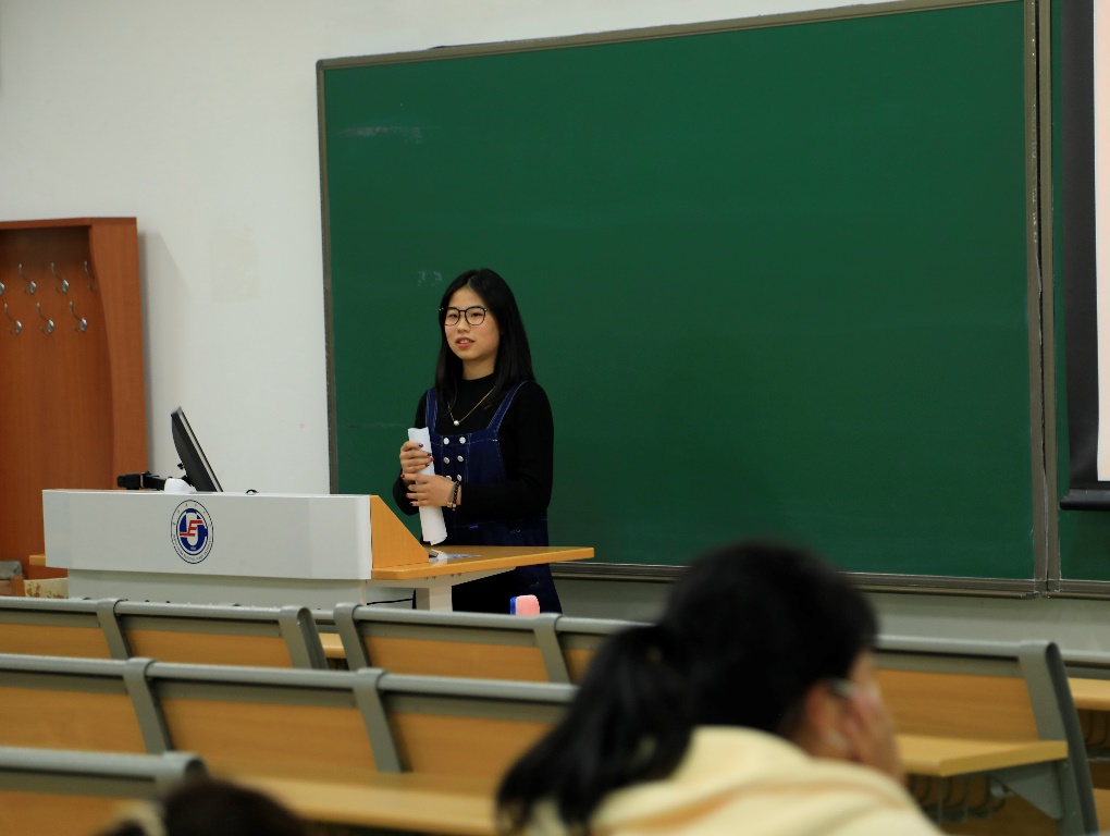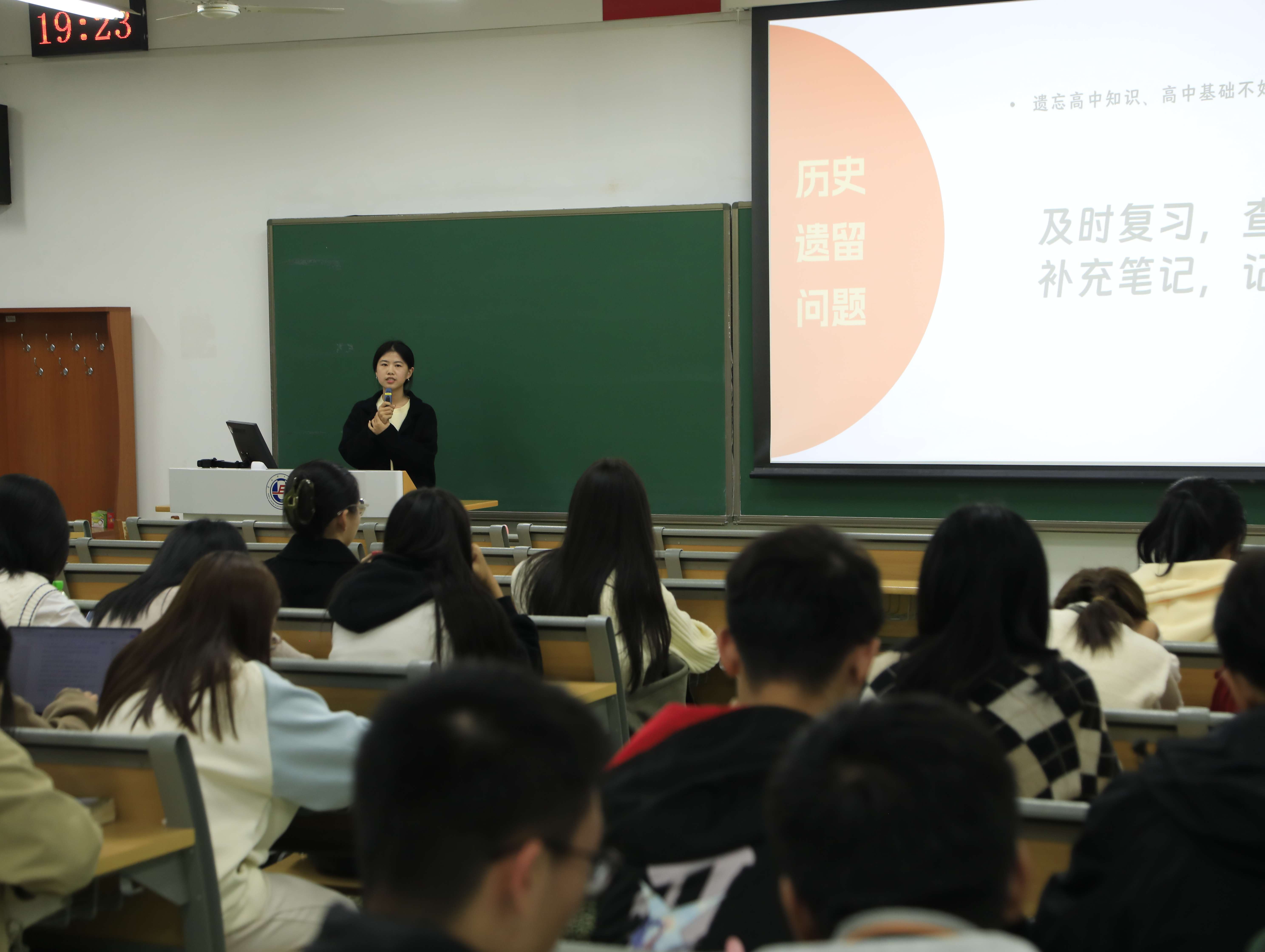 首先由覃同学率先进行自我介绍,随后她分课前准备-预习、课堂听讲-专注、课后复习-及时三个部分为大一年级员工阐述高数学习思路与方法。