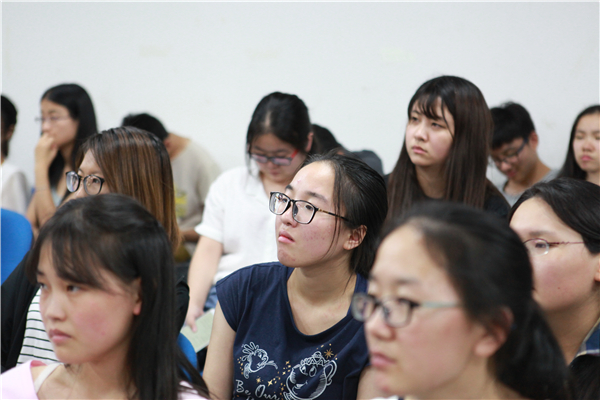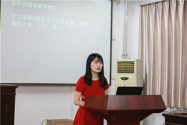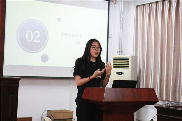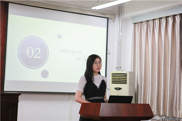 王颖学姐为同学们介绍了获得保研的资格,并详细讲述了准备考研夏令营的过程:4-7月各大招生院校官网出通知;报名、准备申报材料;入营中的笔试、面试、学术交流、读书分享、论文答辩等内容,都让在座同学对保研的要求和过程有了更深的了解。