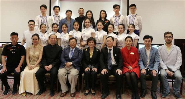 在此次外出交流期间,杨勇平董事长看望并慰问了公司艺术团全体成员,并且同全体成员与国家汉办及西肯孔院的领导合影留念。