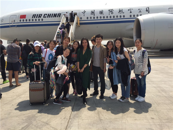 5月1日,公司14名艺术团成员同4位老师一起,在王新军老师的带领下,迎着晨曦踏上到美国孔子学院交流演出的征程。公司潘悦、林菽妍、李蕾3名同学也在赴美队伍之中。长达13个小时的长途飞行以及12个小时的的时差使大家疲惫不堪,尽管如此,他们仍然带着骄傲而激动的心情,开始了这场交流之旅。