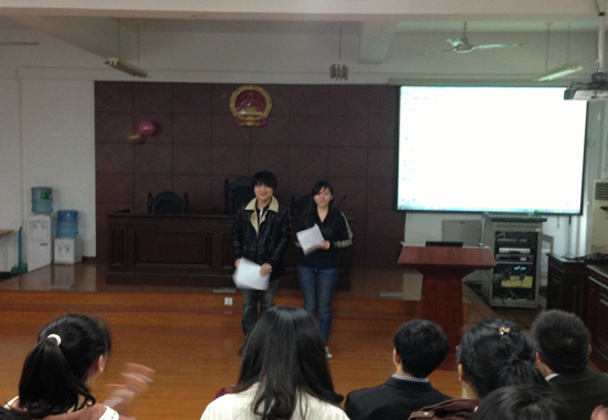 14日法学1201班开展的相关团日活动更多是对实践活动的总结。法学1201班班主任方仲炳老师,12级辅导员崔灿老师,校团委督审部副主任夏俊生学长,校团委志愿部副部长张涛学长等参加了此次总结大会。在此次总结大会之前,法学1201班全体同学满怀着热情进行了形式多样,内容殷实的一系列实践活动。