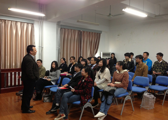 会议尾声,党总支副书记王硕老师点评了大会,他说这次会议对党的十八大解读全面、重点讲解细致深入,展现了一个班级丰富多彩的活动,体现了中文班强大的凝聚力,他也表扬同学们会场布置精心得当。王硕老师语重心长地和大家回忆了他自己的一番学习经历,引导同学们思考了什么是当代一流老员工,如何提高高等教育质量,有何标准与措施。他也劝诫同学们不必思量太多,不必着急,要活在当下,活得精彩,享受幸福人生。意蕴深厚的讲话引发了全场热烈的掌声,给人以启迪。