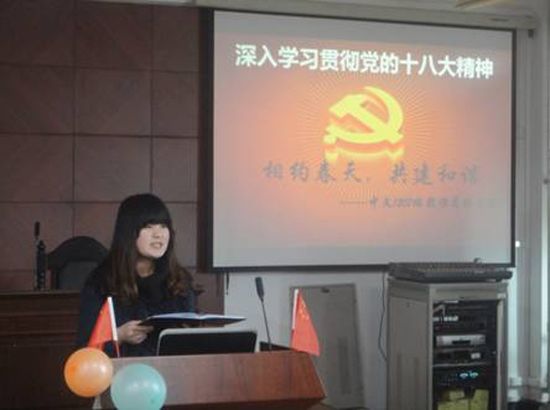 为深入贯彻落实党的十八大精神、两会精神,强化团支部建设,提高团员思想政治教育的时效性,抒发爱党爱国情怀,凝聚团员发展力量,yl23455永利集团2012级各班相继开展以“学习党的十八大精神传递青春正能量”为主题的团日活动。