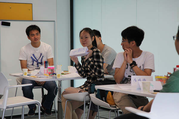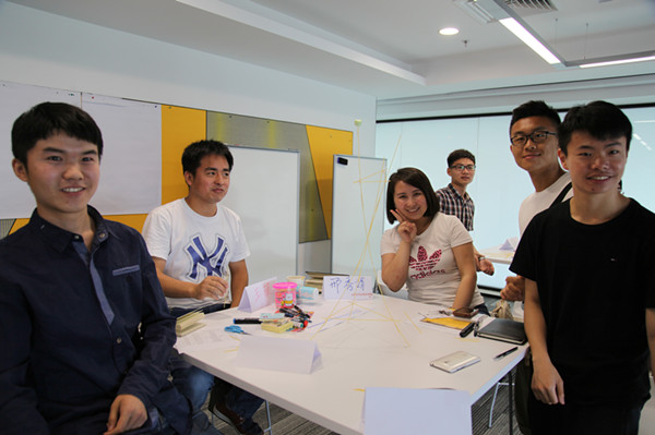 首先,SAP社会企业责任部的Linda女士作为主持人把大家分为四个事前互不认识的小组,在愉快的交谈了解一会后,开始第一个棉花糖游戏环节,20根通心粉、1米长胶带、1米长绳子还有1块棉花糖,一定是独立结构,不能依附和接触任何物体,如何使棉花糖置于顶端且是完整的?只有18分钟时间,每个人都觉得是不可能完成的任务,但是还是急中生智开始构思,有的画模型结构,有的着手尝试搭起来,在短短18分钟之后竟然四个小组全部都把棉花糖立起来了!是的,没有什么是不可能的,不能被条条框框束缚着,要勇敢地去尝试,这就是棉花糖游戏给我们带来的启发。第二项创新思考是2分钟时间画出心目中的“成长”,每个人都大胆地展示自己的画作,每个人也都认真倾听,不同的思维就在此时碰撞,不同的想法就在此时得以表达,图画不在于精美的画技,而在于思想和灵魂。
