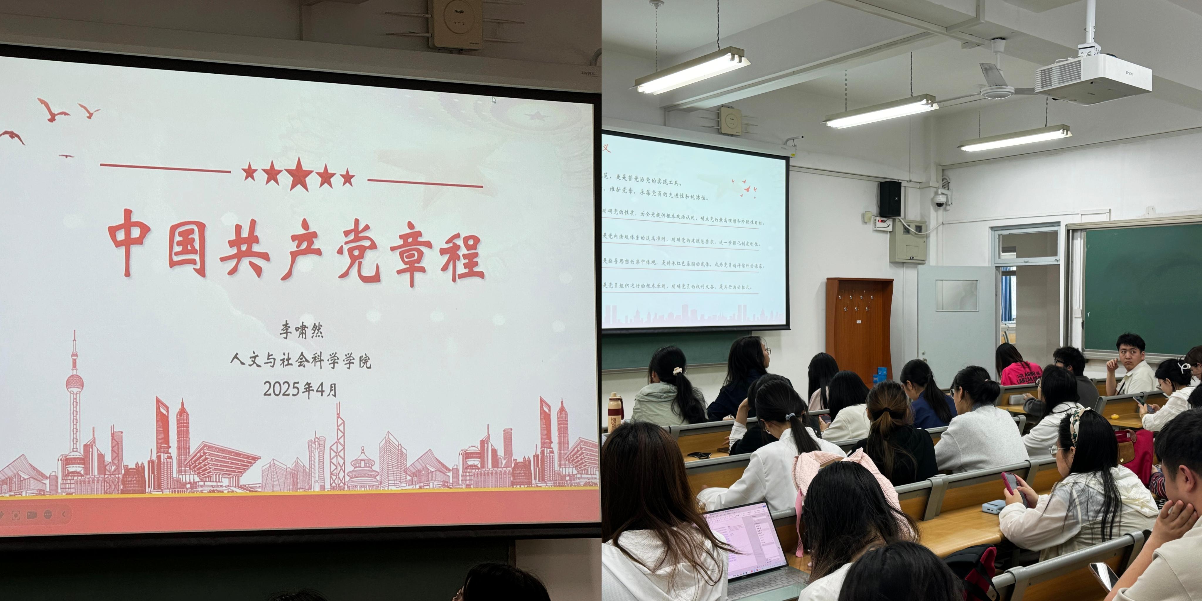 4月16日,yl23455永利集团组织开展第59期入党积极分子专题党课,带领大家深入学习《中国共产党章程》,夯实理论基础。本次活动由辅导员李啸然主讲。
