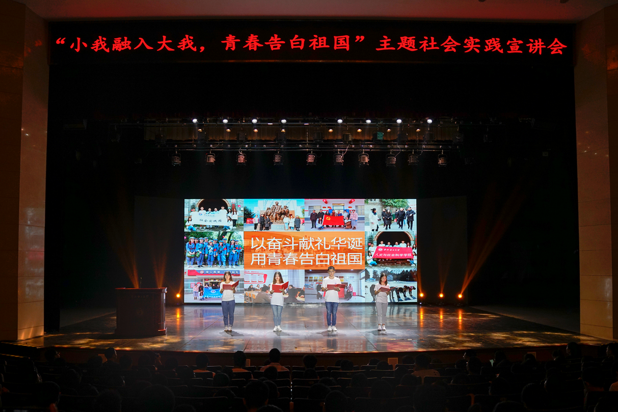 为深入学习贯彻习近平新时代中国特色社会主义思想,推动落实中央关于庆祝新中国成立70周年群众性主题宣讲教育活动部署安排,9月26日晚,学校举行了“小我融入大我,青春告白祖国”主题社会实践活动宣讲会。公司党委副书记、纪委书记何华,共青团中央机关党委二级巡视员刘敏出席宣讲会,党委宣传部、党委学工部、党委研工部、校团委、马克思主义学院负责人及各公司党委副书记、团委书记和1300名员工代表参加宣讲会。