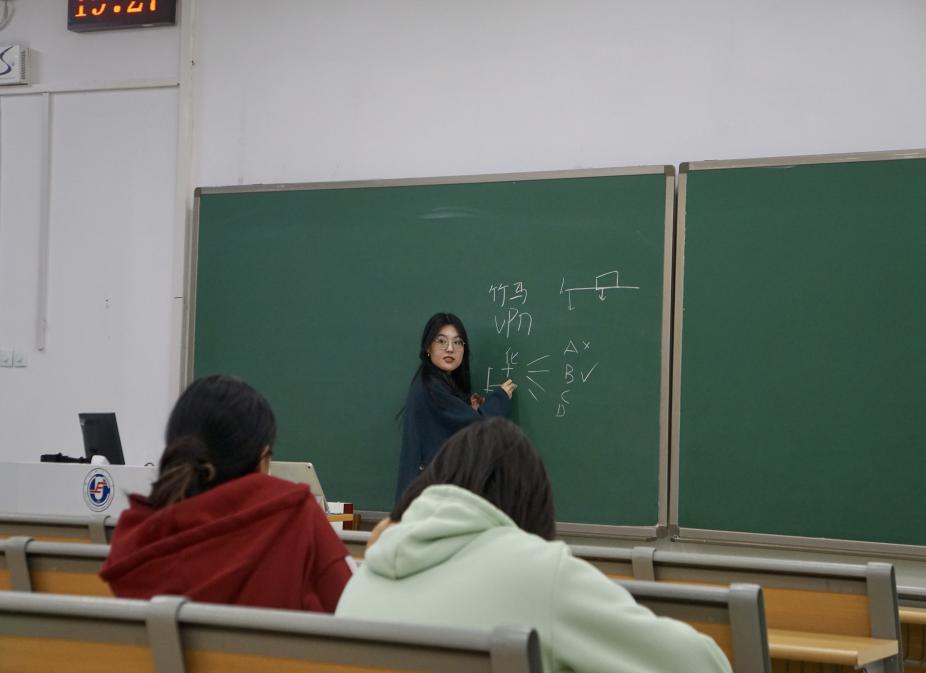 通过学姐的分享,同学们获得了更深刻的思考,也产生了一些新的疑惑,在交流分享环节,同学们积极提问,巩越同学也认真回答。分享会进行的如火如荼,同学们认真倾听学姐的答疑,并在会后积极咨询巩越同学如何在面临学习生活升学问题时与其保持联系,请她答疑解惑。巩同学耐心的提供了自己的联系方式,并祝福所有同学可以学有所成,劳有所获。