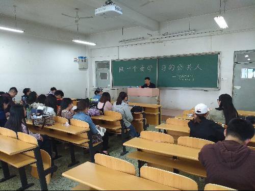 2017年4月21日晚7点,法学1402班全体同学于教三模拟法庭开展了一场别开生面的“学风建设与员工学习主体”的主题班会。班主任结合班会主体,谈了谈自己的切身体会,他说发现有的孩子爱学习,有的不爱学习,分析其中的差异,这是一种习惯,而不是一种信仰一种目标,他在刚进入高中的时候,成绩并不是很理想,但最后他却是班上最后三个本科之一,他分析了一下,因为他们大部分没有培养出一个良好的习惯,基本上处于一种放养的状态,他们不能控制住自己,抵制住诱惑,而具有良好成绩反而让他慢慢超越了那些曾经比他成绩更好地同学。对一个人影响很大的是环境,每个宿舍的氛围不一样,你和什么样的人在一起都会影响到你,但即使在相同环境下,每个人之间的成就也是不同的,最终决定一个人走多远的还是信念,这种信念会渐渐变成一种习惯,影响你的一生。最后班长庞子恒进行了总结性发言,希望大家都能在今后的生活中坚定信念,互相帮助,获得一个理想的成果。