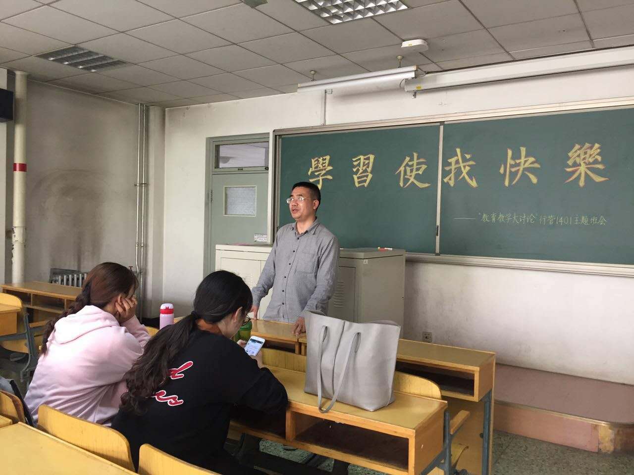 2017年4月17日下午13点20分,行管1401班于教三B202开展了以“公司产品大讨论——学习使我快乐”为主题的班会活动。此次班会活动由以下三部分展开。这次班会以公司产品大讨论作为基础框架,同学们与老师就教学方法,听课状态等教育相关问题进行了讨论,双方进行了反思,阐述了自身的不足,以及以后的学习工作方向。另外,就教育问题引申到了与我们大三就业息息相关的问题,使同学们得到了启发。