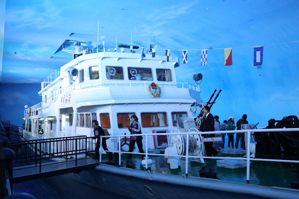 在参观中国海关博物馆过程中,同学们首先参观的是“海关902”艇。“海关902”艇长约六十米,是我国自行设计建造,也是上世纪九十年代在珠江水域上最为先进的舰艇之一。该艇于1989年7月20日在拱北海关投入使用,2009年11月19日正式退役后被征集为中国海关博物馆藏品。