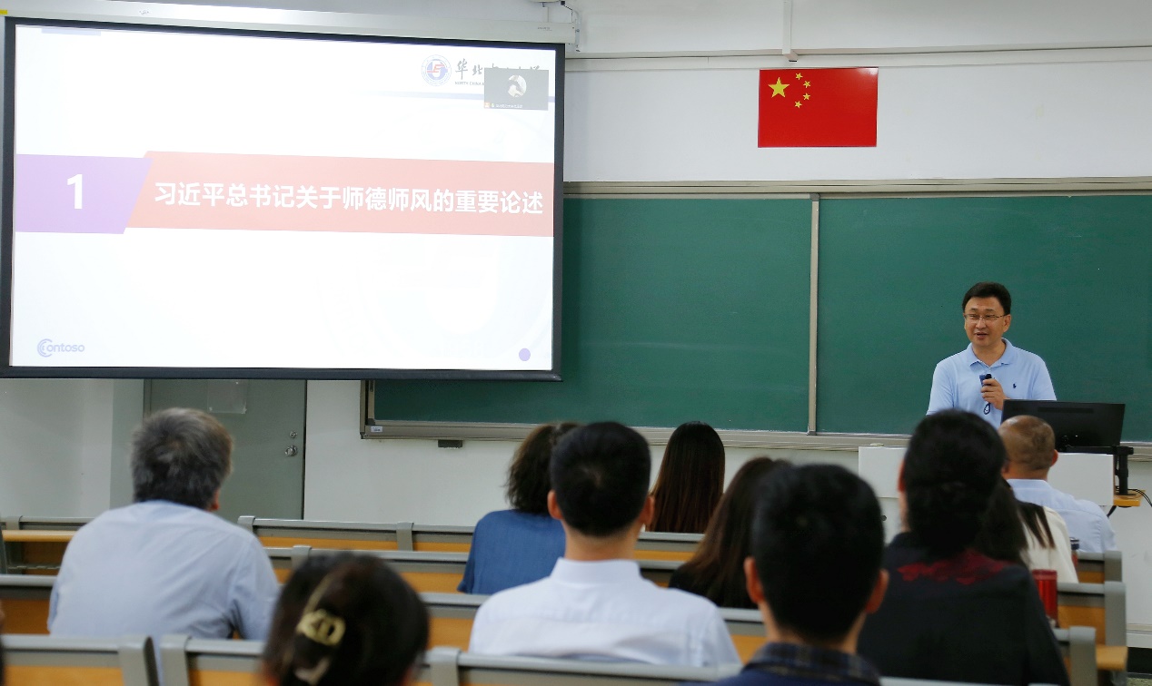 公司副经理赵旭光传达了《华北电力大学师德集中学习教育实施方案》文件精神。公司党委书记苑英科就师德师风建设进行宣讲。