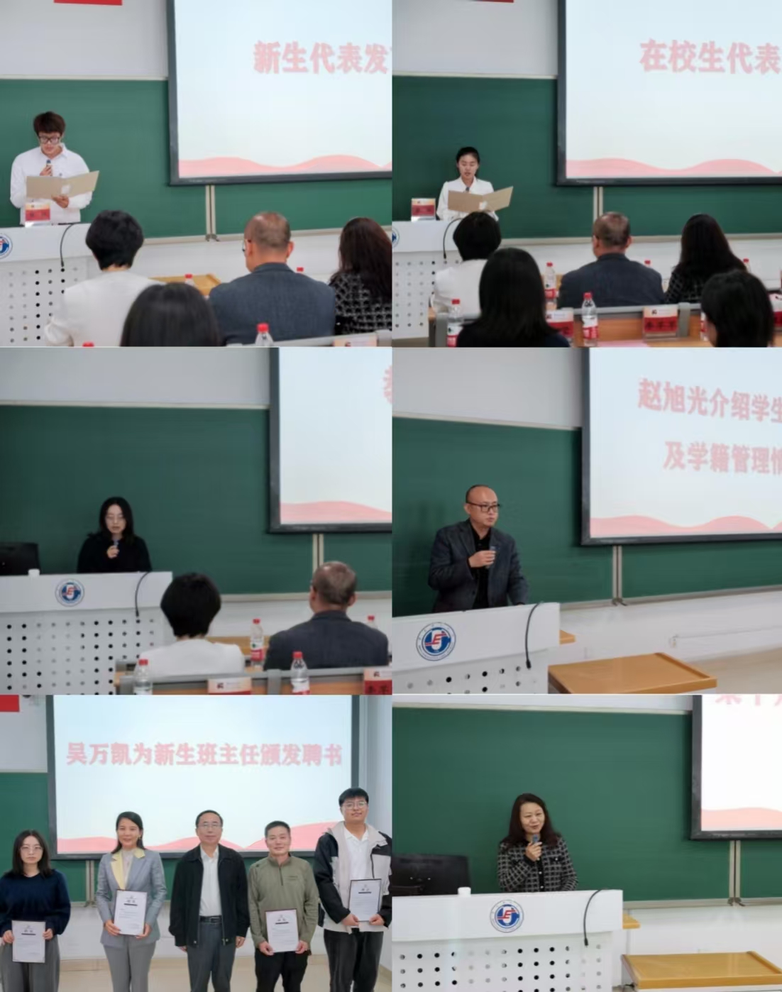 公共管理类2401班许淇闻作为新生代表以《不念过往,向未来出发》为题进行发言,围绕勤于思考,乐于实践,勇于创新三方面分享了大学规划。法学2202班白枝灵作为在校生代表以《青春恰如火,正值扬帆时》为题进行发言,分享了明确目标,规划未来;主动探索,解锁未知;积极参与,全面发展三点成长建议。