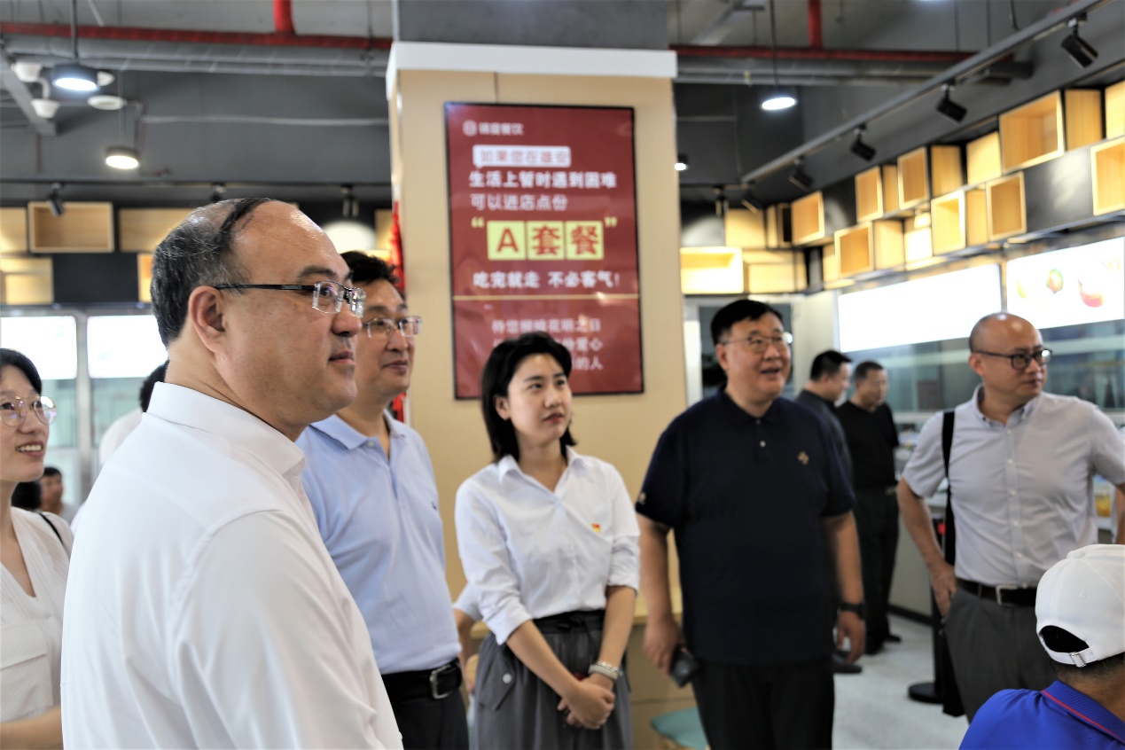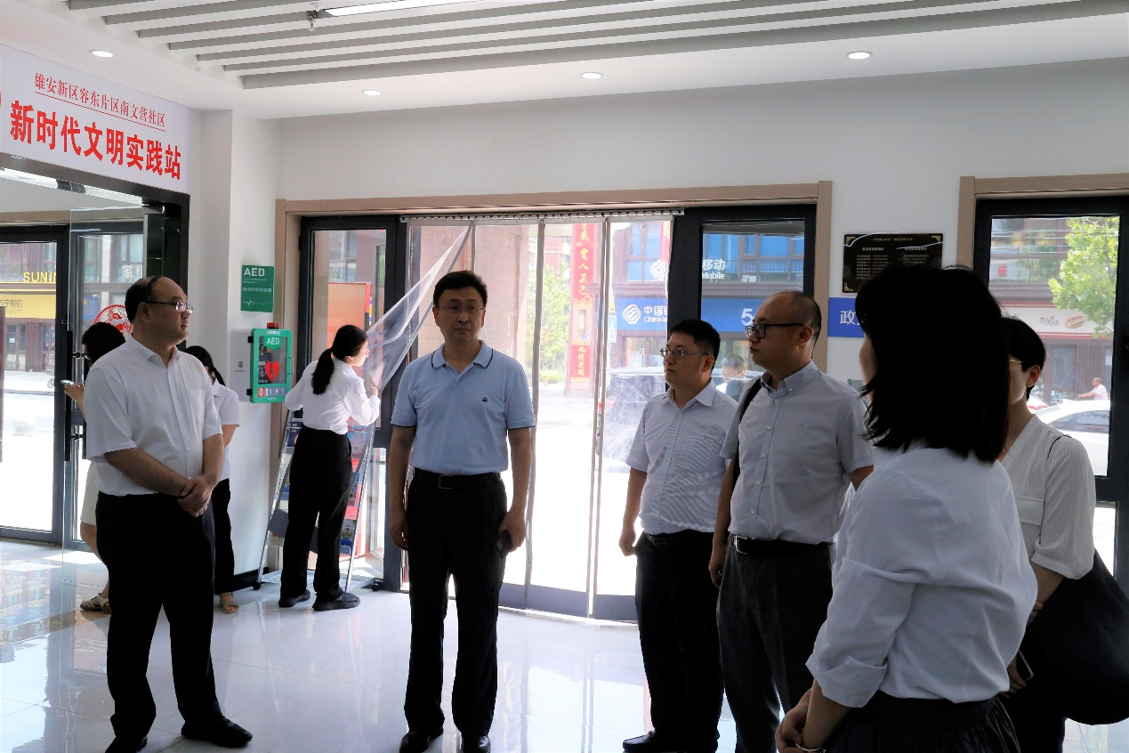 在容东片区南文营社区党群服务中心,工作人员介绍,南文营社区安置了安新、容城两县回迁群众5000余人,既是“村改居”回迁社区,也是党建引领社区治理、基层治理解难题的“实践田”。社区探索建立了党建引领下的“一呼联应”工作机制,运用联席会议的形式来破解基层治理难题,以社区级、楼院级、楼门级的三级网络实现基层党建全覆盖。社区便民服务站可为居民提供的45项服务事项。调研组还考察了社区食堂和回迁小区。