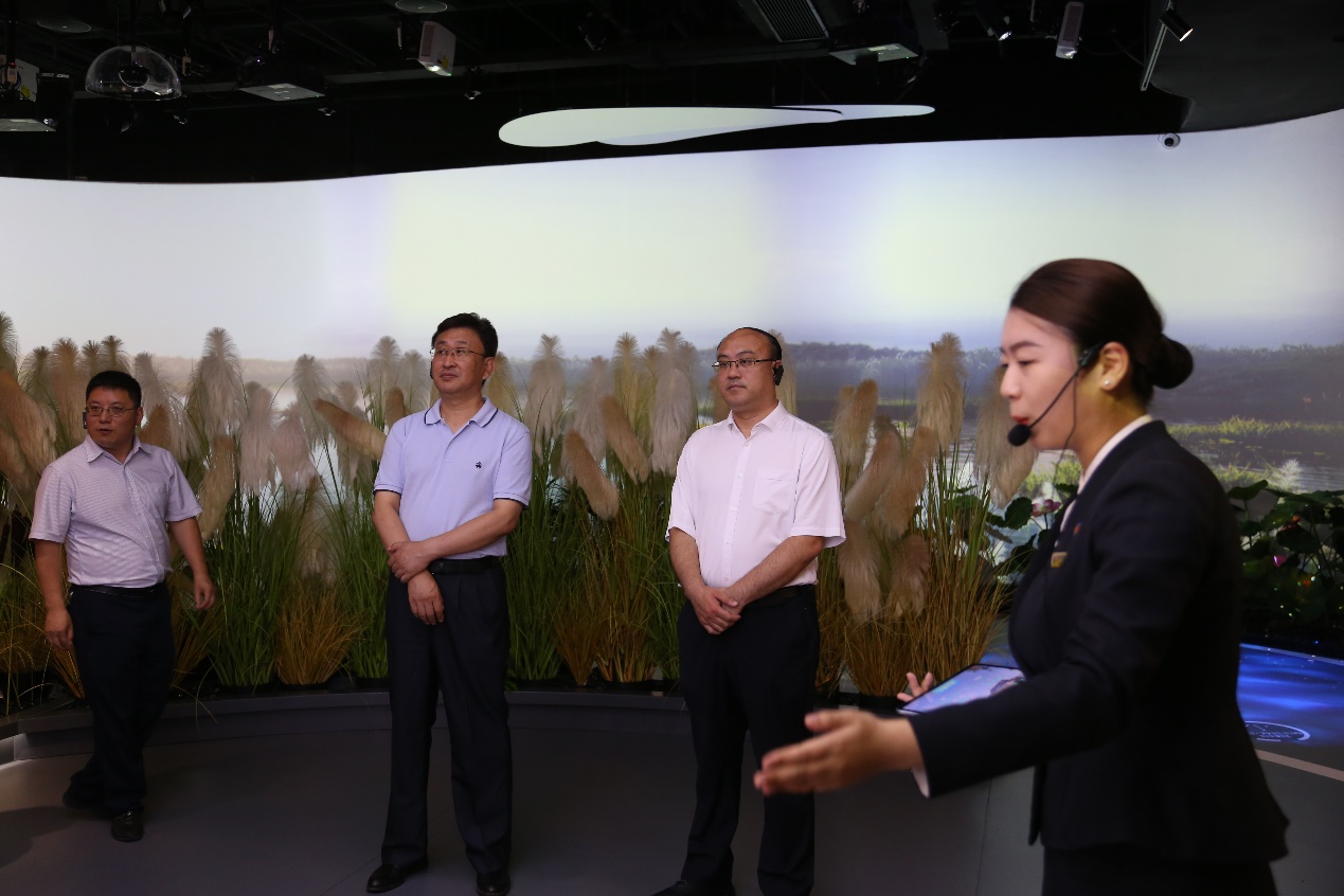 随后,调研组前往雄安印象展厅。展厅分为“雄安·共生”“雄安·共建”“雄安·共享”三个展区,采用现实AR、裸眼3D、多媒体触屏互动等数字科技,让观众能够立体化感受雄安的历史文化脉络,见证新区建设发展历程。