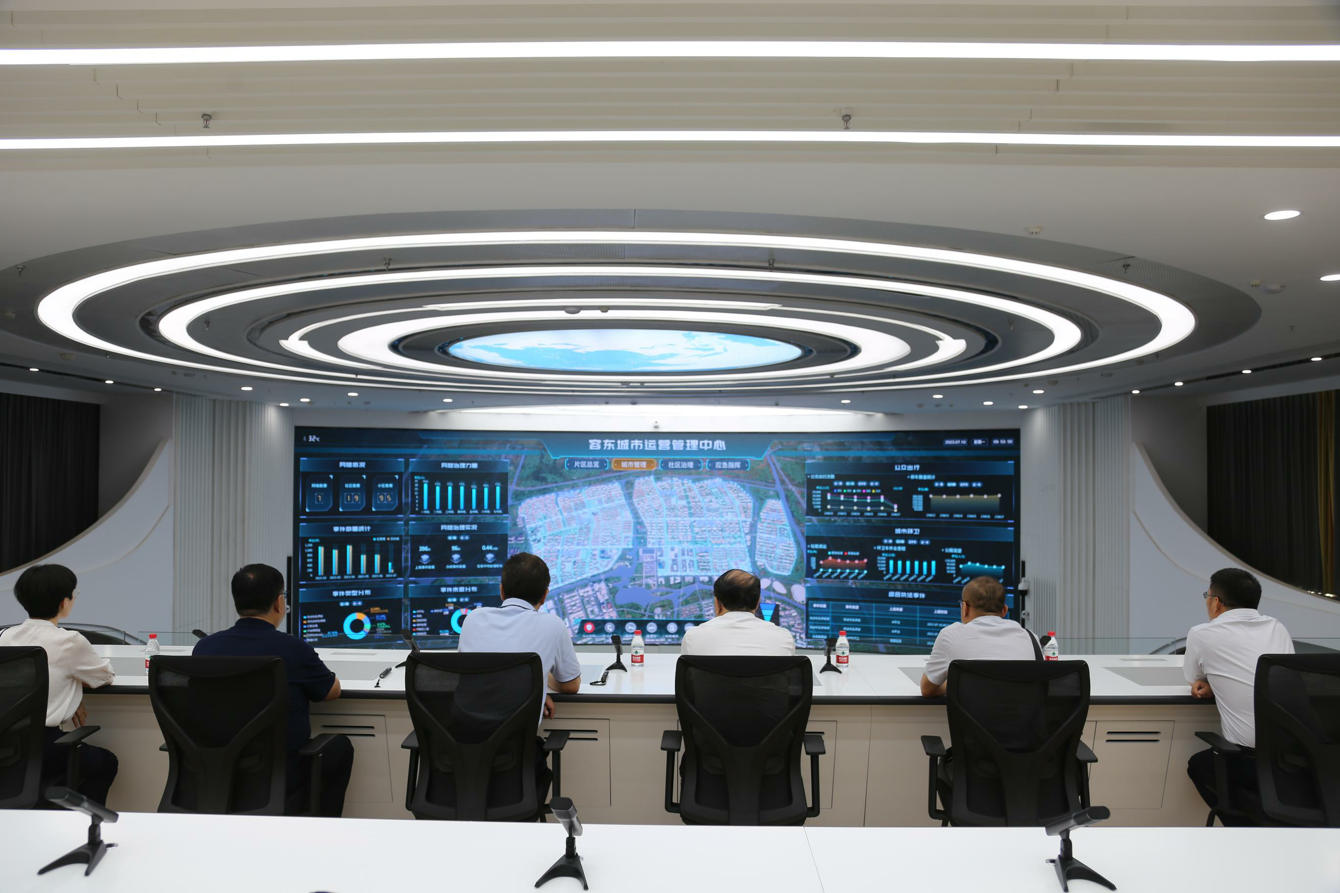 调研组在容东城市运营管理中心进行了深入调研。容东城运中心综合管理平台,依托“一中心四平台”,汇聚17个信息化系统、45类数据,多维度立体展现片区总体概况和运行态势,为居民提供更精准的服务,为各部门日常工作提供数据支撑。例如通过数字化管理,可以动态检测老人住户的高峰用水状况,如有异常,一小时内会通知到社区工作人员入户查看。城市运营管理中心云上云下有机融合,像城市大脑一样,对基层各类事件进行全流程闭环式管理。