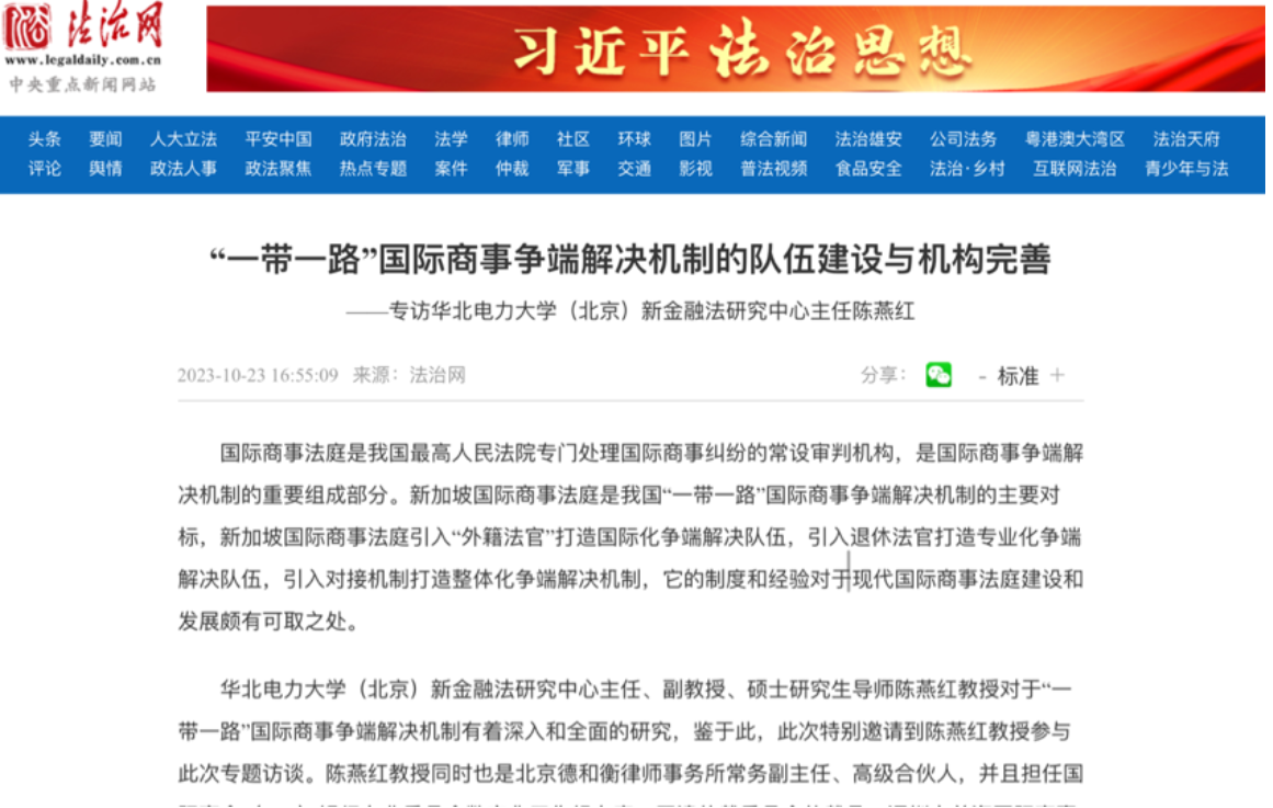 1.法治网10月23日专访:“一带一路”国际商事争端解决机制的队伍建设与机构完善