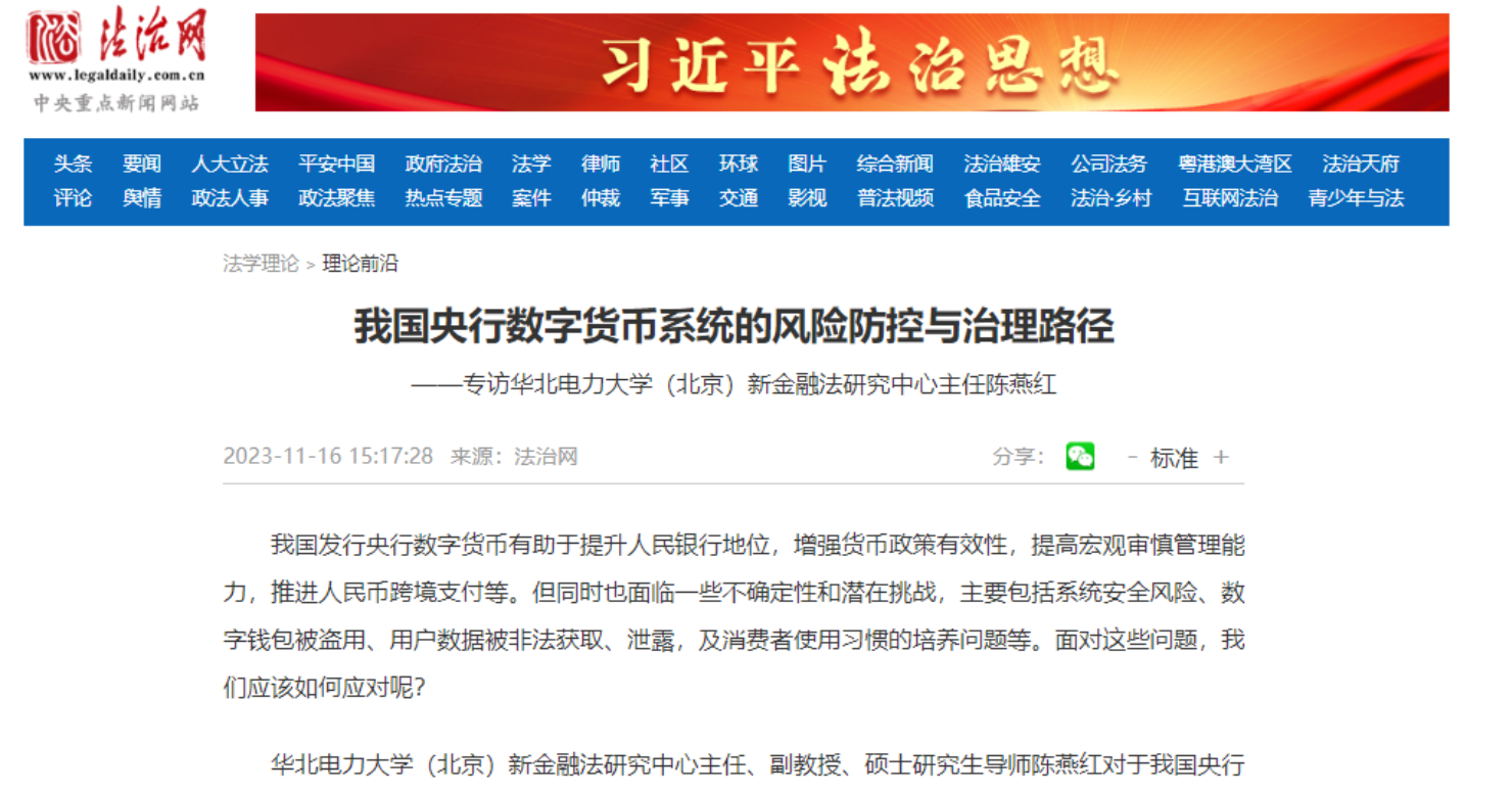 3.法治网11月16日专访:我国央行数字货币系统的风险防控与治理路径