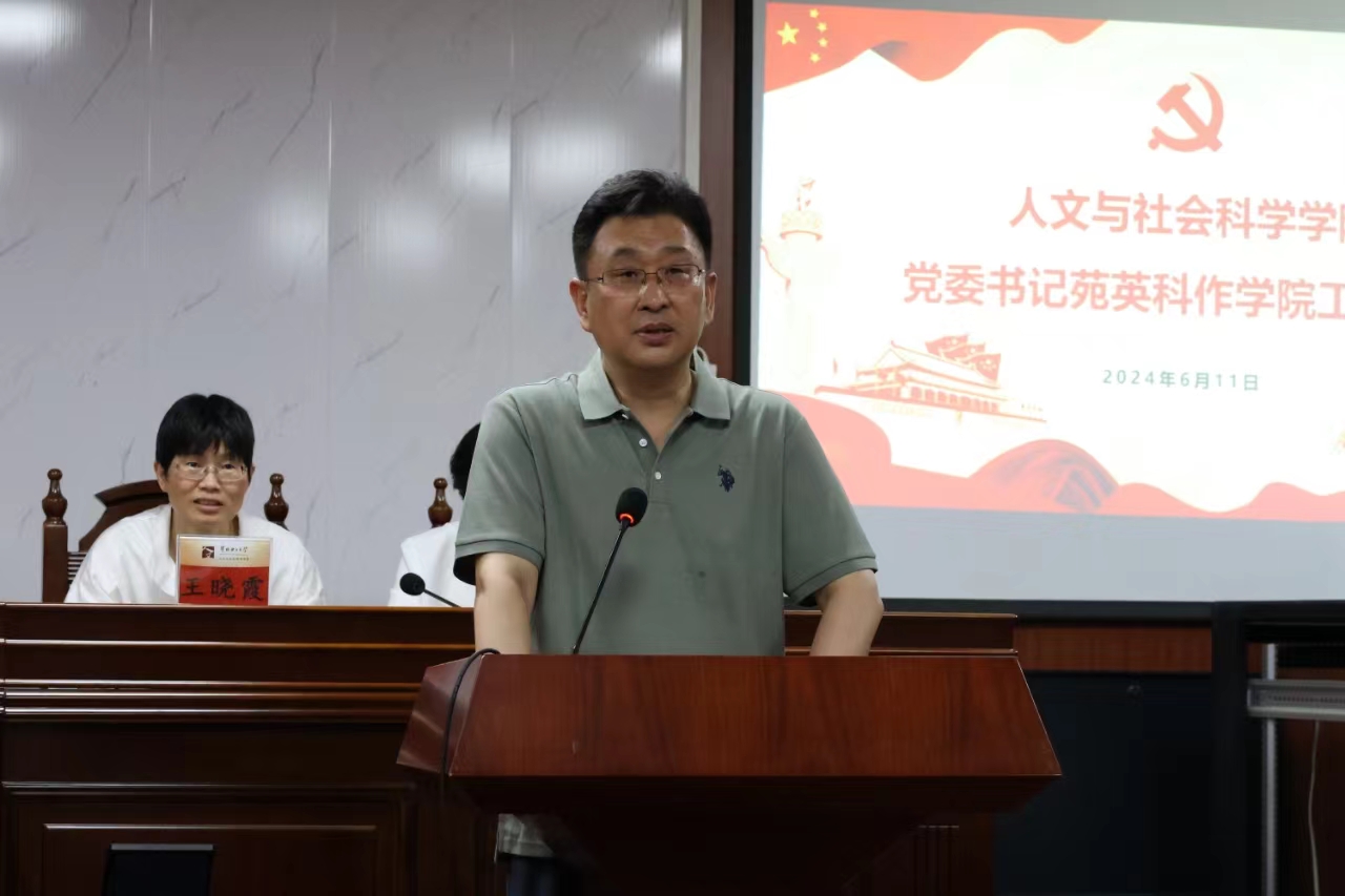 公司党委书记苑英科做工作报告。过去一年里,学院深入学习贯彻习近平新时代中国特色社会主义思想和党的二十大精神,在党的建设、思想引领和事业发展方面取得了良好成效。公司党建“标杆院系”创建工作通过学校验收,1个教工党支部获评“一融双高”示范建设,顺利开展新闻与传播专硕首届招生与培养工作,加强在线课程建设,积极推动教改工作,系统化的实践教学模式初步形成,与社区共建1400㎡劳动教育实践基地,员工工作等方面取得多项标志性成果。苑英科从深化党建标杆院系创建成果,开展党纪学习教育,实施“攀峰行动”计划,加强意识形态工作和师德师风统筹建设,推进课程思政建设和课程改革,加强人才引育,聚焦学业、就业、心理等重点工作创新老员工思想政治教育工作等方面,对2024年的工作进行了全面部署。