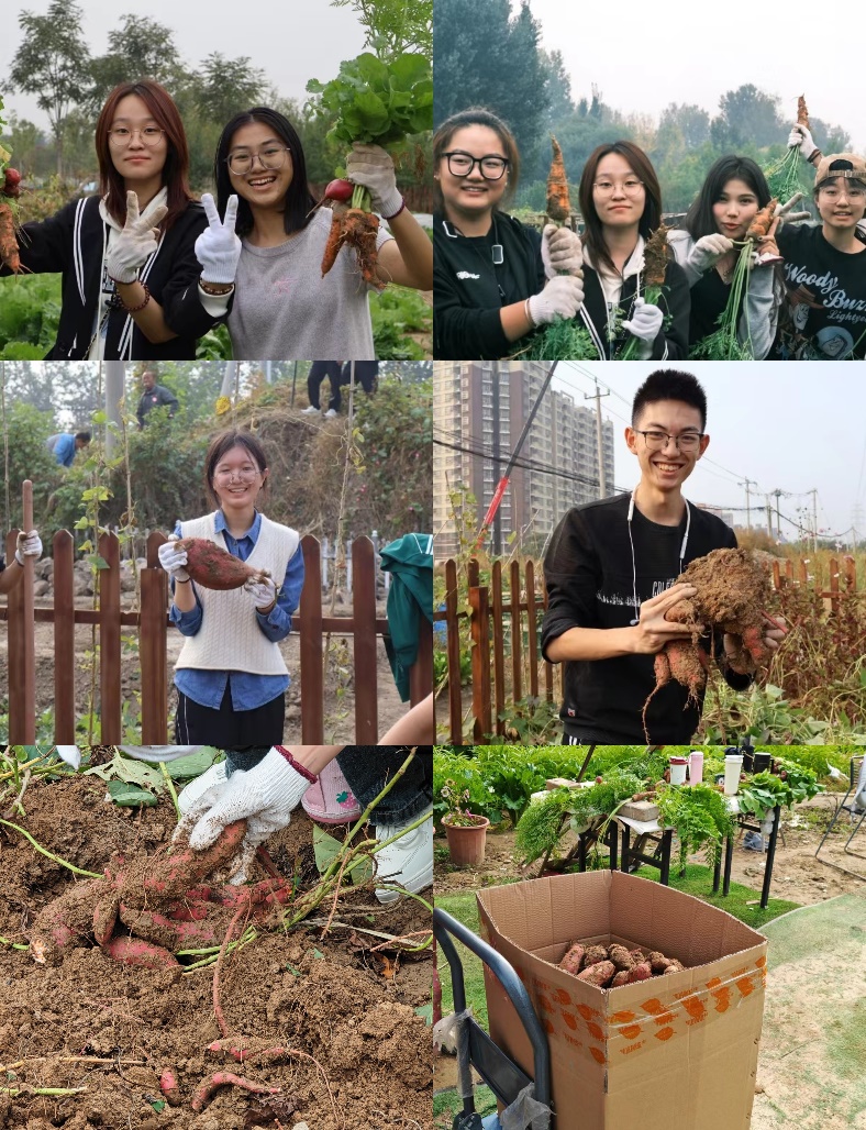 初识犁梦园,新生代表被眼前茂盛生长的农作物所吸引,学院志愿者向大家讲述了学院师生合力把基地由荒地变农田的建设过程,以及翻土施肥、节气种植、日常养护等农作物生长中的劳动细节和组织劳动的过程。农业指导教师带领新生代表认识了基地内不同蔬菜的生长习性与丰收时间,学习了挖红薯、拔胡萝卜的技巧,尽管过程中遇到挑战,但是同学们在尝试中不断学习,改变策略,体验了收获的喜悦与农作的辛劳。