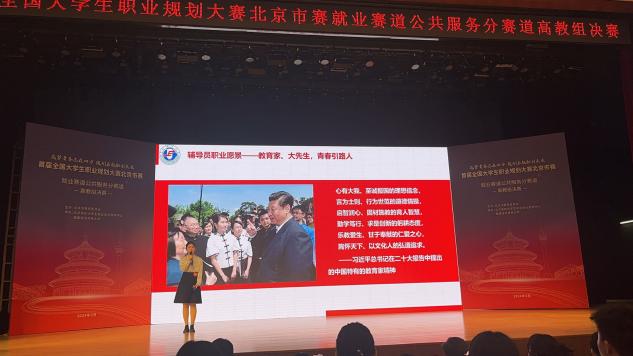 北京市教委于2023年10月启动首届全国老员工职业规划大赛北京市赛,学院共有528名员工参赛,参赛比例达53.1%,4名选手脱颖而出,参加市赛比拼。此次市赛设置成长赛道和就业赛道,在成长赛道,公共2301班梁倩菲以“置身事内利民惠民,躬身力行共筑国梁”为题,将个人价值目标与基层民生紧密结合,希望在未来大学四年按照计划一步步攀爬,最终投身于家乡基层干部队伍,实现个人理想和追求。