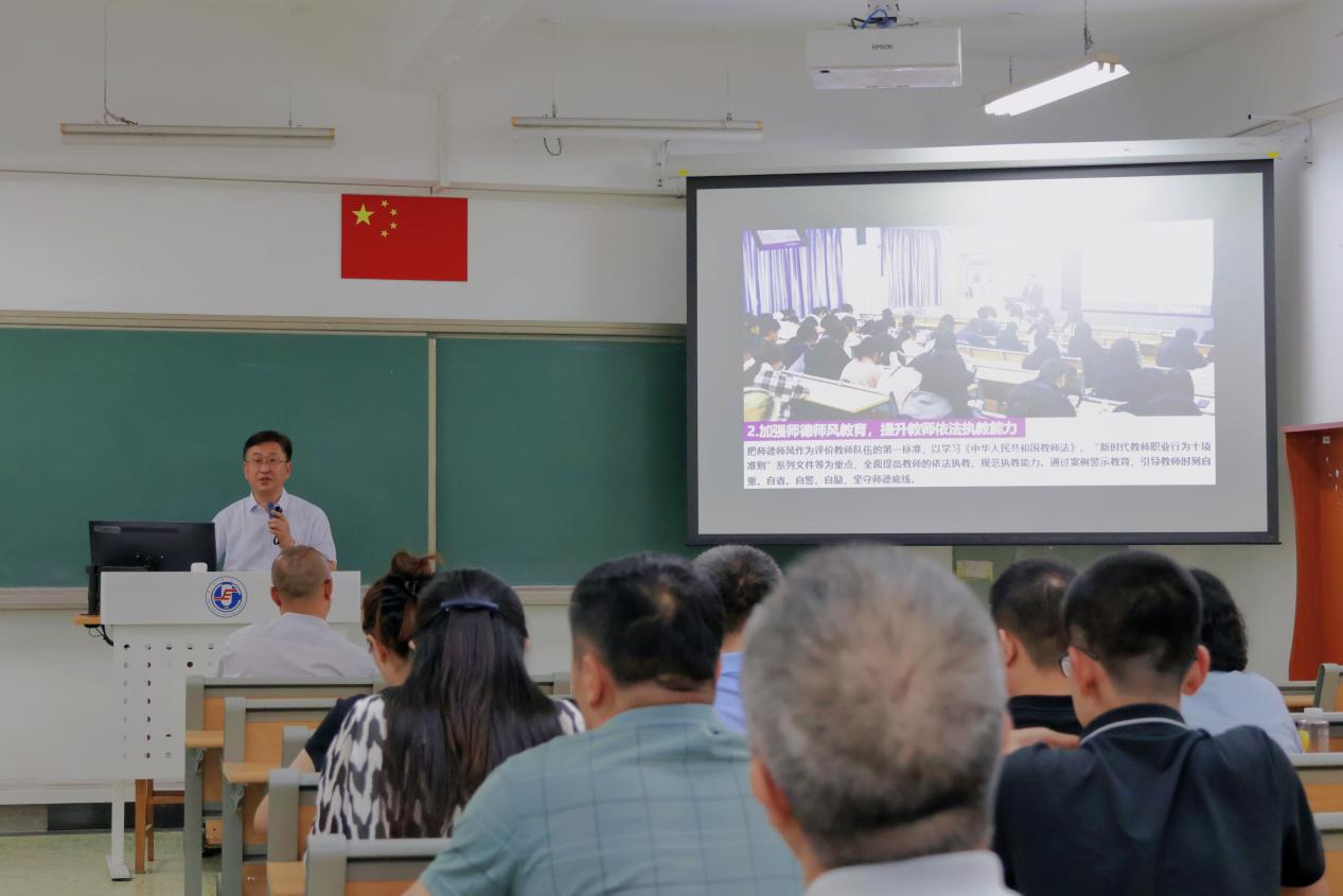 7月2日,yl23455永利集团召开师德师风警示教育大会,学院全体教职工参会,公司党委书记苑英科主讲。