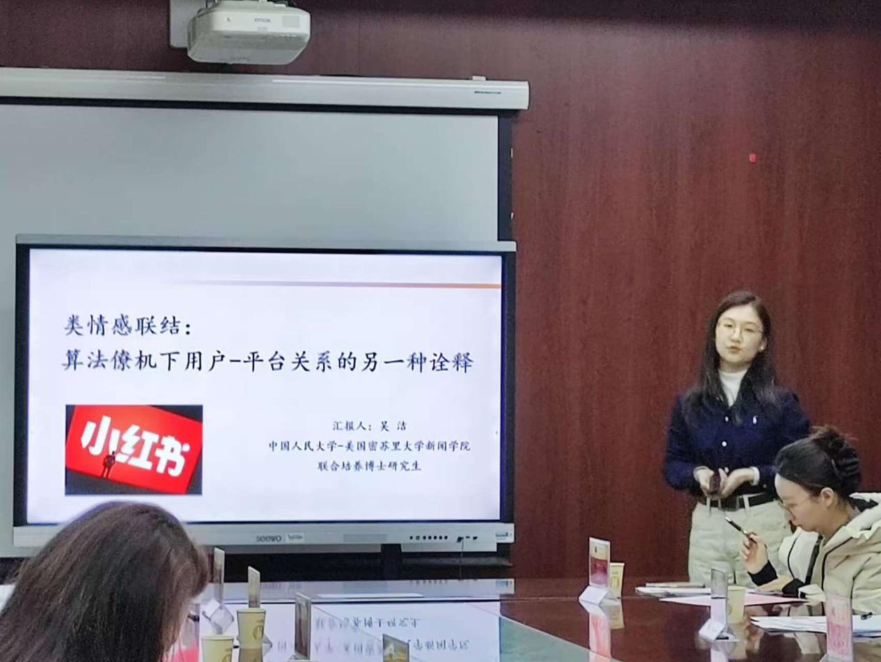 清华大学新闻与传播学院的博士后余梦珑围绕AIGC与智能传播,分享了其在理论研究、行业实践和教学探索方面的成果。她强调了人机协作在人工智能时代新闻传播中的关键作用。北京师范大学新闻传播学院的郅慧博士提出新闻传播学研究应具备新方法、新理论和新视野的三“新”特质。中国人民大学与美国密苏里大学联合培养的吴洁博士则探讨了算法僚机下用户-平台关系,以小红书为例,通过深度访谈揭示了用户与平台之间基于算法的情感互动实践。