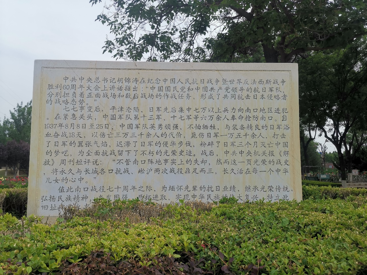 在南口战役旧址碑处,“南口战役旧址”几个大字分外醒目。法学专业的老师们在这里久久驻足,共同回顾当年南口战役中先辈们面对侵华日军英勇顽强的战斗事迹,缅怀革命先烈。