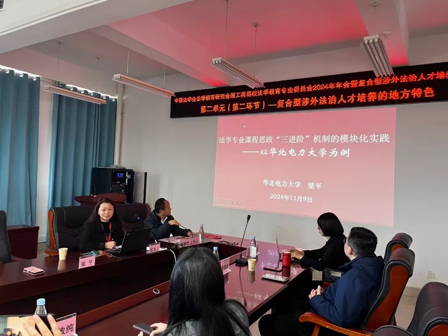 11月9日,中国法学会法学教育研究会理工类高校法学教育专业委员会2024年年会暨复合型涉外法治人才培养高端论坛在云南省昆明市召开,来自全国理工类高校法学院的专家学者共计80余人现场参会。公司yl23455永利集团经理、法政系主任梁平教授受邀参会并作题为《法学专业课程思政“三进阶”机制的模块化实践——以华北电力大学为例》的报告,yl23455永利集团副经理赵旭光教授受邀主持会议第三单元的研讨。